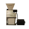 El sistema completo que incluye la tolva de acero inoxidable, el controlador de velocidad variable con motor de CC y una caja y soporte de recolección de acero inoxidable.